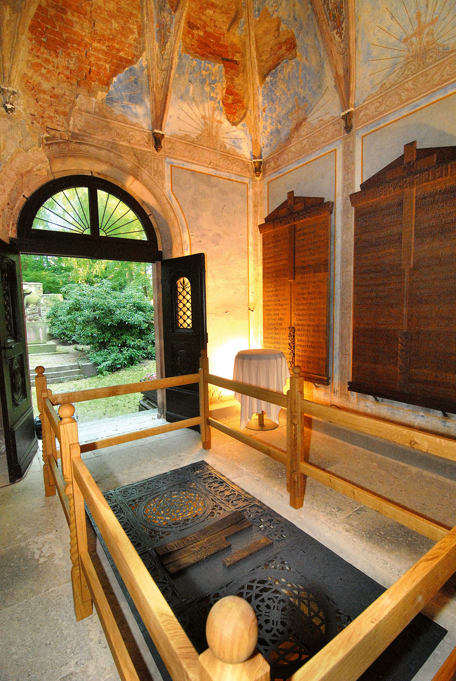 Die gequaderte Fassade erhielt einen Neuputz. Der Zugang zur Gruft wurde vermauert. Dachreparaturen konnten 1982 großflächige Nässeschäden nicht mehr verhindern. Überzeugend ist die Restaurierung des Eingangsportals von 1983. Seit 2009 helfen restauratorische Maßnahmen, Substanz zu erhalten. Die Tür mit den Glaseinsätzen wurde komplett überarbeitet und das Gewölbe gefestigt.